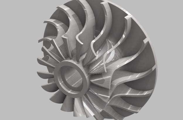 叶轮的整个外形都需要扫描,因此无法完成对叶轮的一次性扫描。根据叶轮的形状,把零件分成上、下两部分,分别进行扫描。然后再在ATOS软件中,通过公共参考点把分别扫描所得的两个文件合并为一个整体。